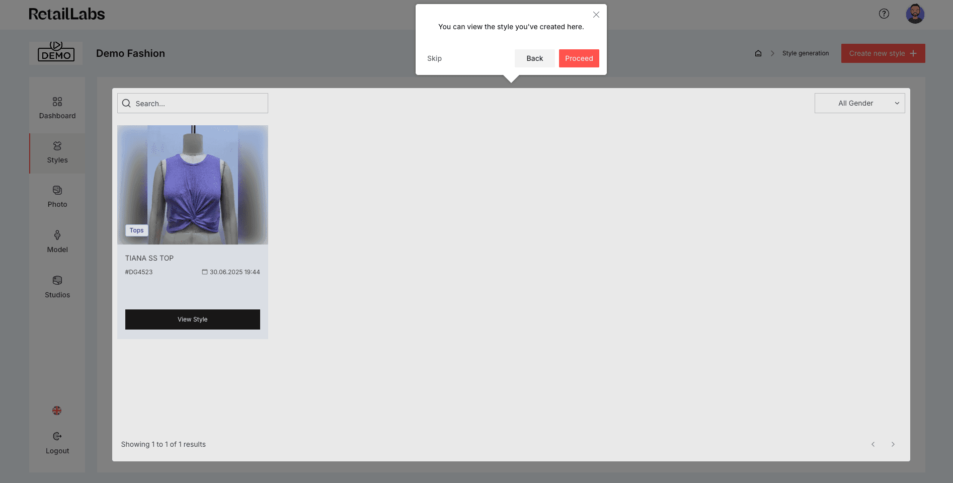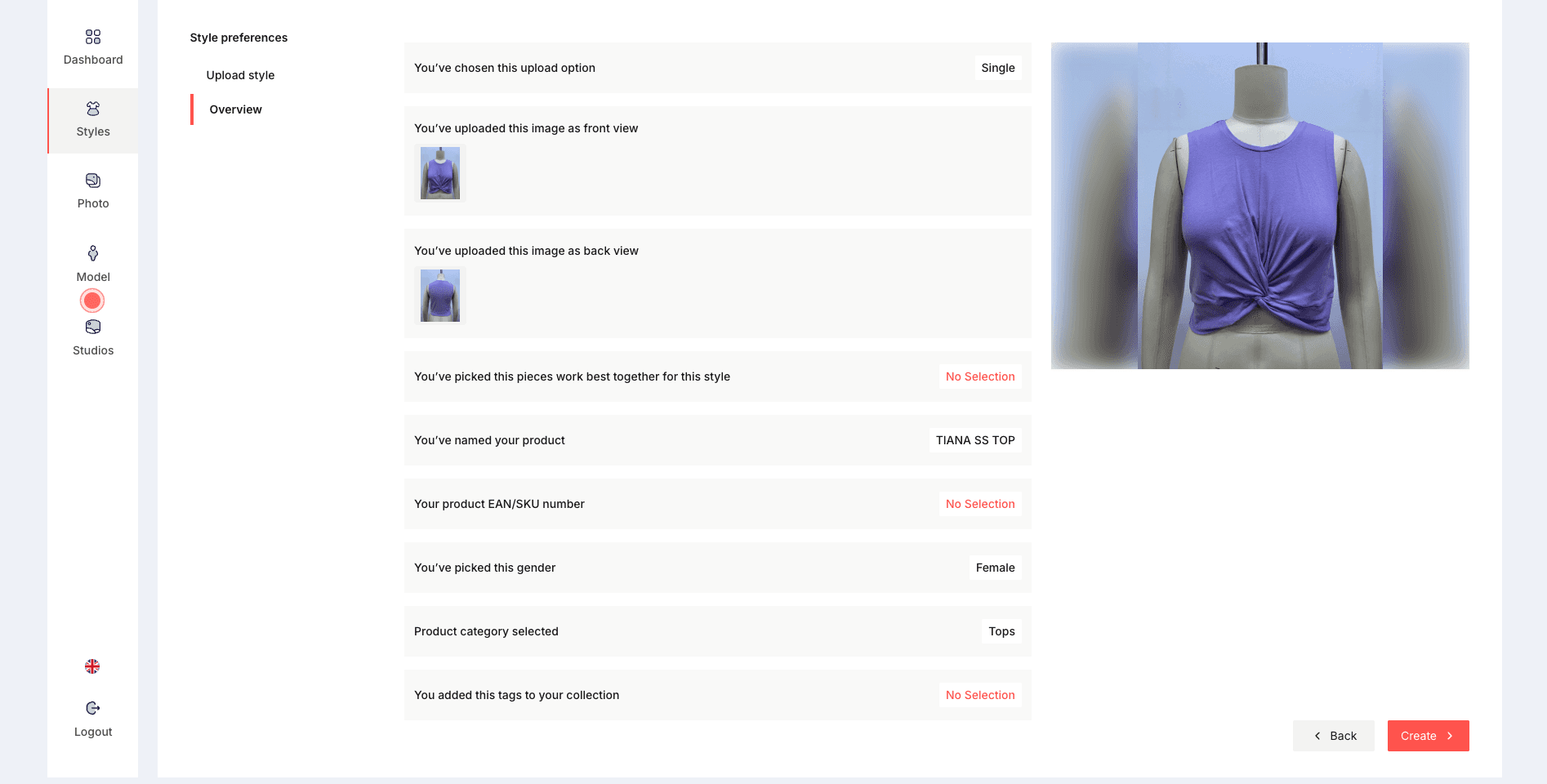 Tap the Create new style button in the top right. This starts the style card creation process for your product.